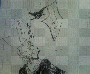 ちょいちょい間切の歩行速度が落ちたり止まったりするので、フンフン鼻唄って前方を行く網問も流石に「あれ」と不思議に思って振り返り、顔色の悪い間切に