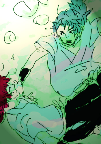 気まぐれに赤髪の舳丸と青髪の重にしてみましたら、久しぶりすぎて描き手の自分に深い深い深い違和感を残してゆきました。・・・。でも閲覧されてる方的にはこっちの配色のが違和感ないのですかな??
