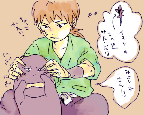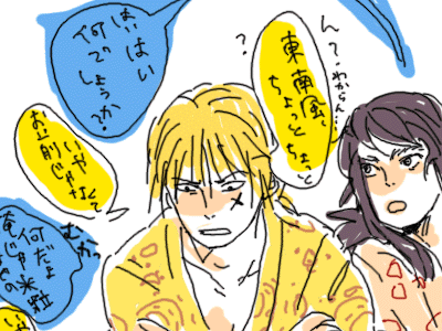 舳丸の怖い話も本当に怖いと思います。東南風のオバケ話と違って、こちらは現実の生身の人間の不幸の連続とか人の業による悪循環の末の地獄絵図、的なしょっぱい話だといいです。それを他人事のように(なぜなら他人事だから)淡々と語らうのが非常に怖い口だといいです。恐ろしいわりにやたらリアルな内容で(なぜならリアルであった話だから)、所々人情物もあったりして聞く人の同情を買ったり買わなかったり…とかく感情移入させるもので、皆一様に「明日はわが身!」とブルブルくる系だととてもおもしろい(わたしが)。感情移入してないのは舳丸だけ、の勢い。