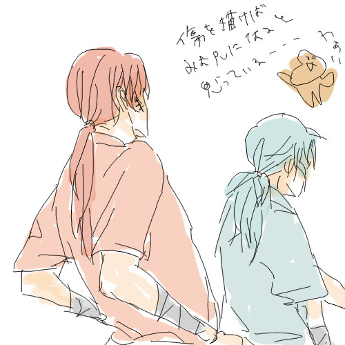 まず間違いなく義丸は疾風を突付くだろうと思います。「兄貴がそんなんじゃ元も子もないでしょ^^」えらい良い笑顔の義丸に疾風の不快指数、ゆるやかに上昇。