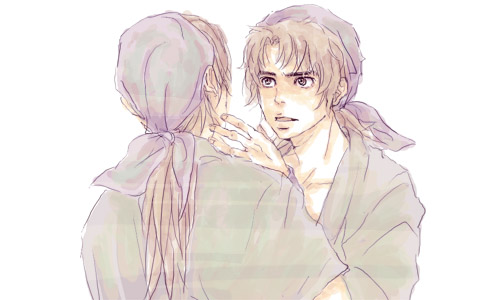 重が舳丸の頬の傷に触れることに関して、舳重的な発想も展開も、重舳的な発想も展開も、どちらも脳内で連日宴会騒ぎです。両者共々たいへん甘美であります。あ~水練んまい。兵庫水軍のおいしい水練という海水をガブ飲みしたい。グデングデンに酔いたい。