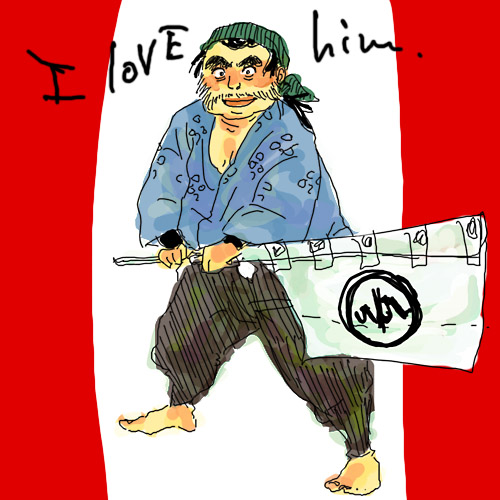 もしかしたら手ぬぐいを取ったら、頭の頂点は限りなく薄いかもしれない。若いけど偉い立場という気苦労が目に見えるようじゃないか…わはは(他人事)恰幅という言葉でフォローしようと思います、全体的に。